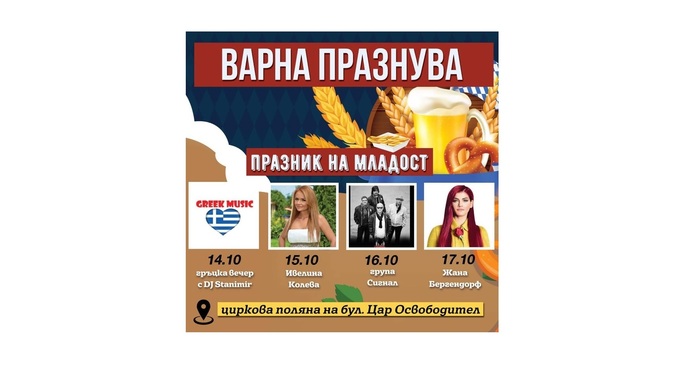 Пищен празник ще зарадва жители и гости на морската ни столица по повод деня на район „Младост”, който се отбелязва на 12-ти октомври. Събитието ще се състои в дните от 14-ти до 17-ти октомври, а локацията е цирковата поляна, намираща се на булевард „Цар Освободител”. Фестивалът ще бъде с работно време 17:00 - 22:00 часа в делничните дни и 10:00 - 22:00 часа през уикенда.