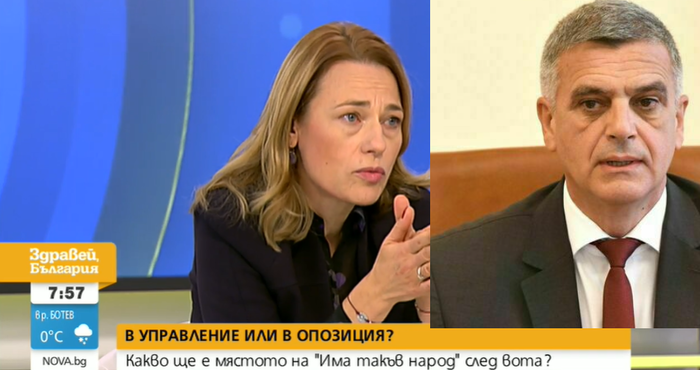 Стефан Янев е диалогичен, умее да балансира, чувахме се често, работихме добре. Смятам, ме той би бил добра кандидатура за премиер в редовното правителство, но това е лично мое мнение. Смятам също, че ще успеем да състави правителство с четворна коалиция без ГЕРБ и БСП. Това каза Ива Митева от "Има такъв народ" в "Здравей, България" по Нова Тв.