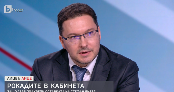 Предложихме точката да бъде разделена, да може да гласуваме оставката на господин Янев, след което да се гласува за новия кандидат за военен министър. Така че никакво правителство не сме подкрепили, нито рокадите на премиера. Винаги е било в такъв случай, трябва да се погледне дебата и да стане ясно, че ние на практика днес заявихме, че в днешния ден трябваше да се гласува не само оставката на министър Янев, вече бивш министър, а трябваше да се гласува оставката на целия кабинет, защото този кабинет се провали в много отношения. Това каза депутатът от ГЕРБ Даниел Митов в "Лице в лице" по бТВ.