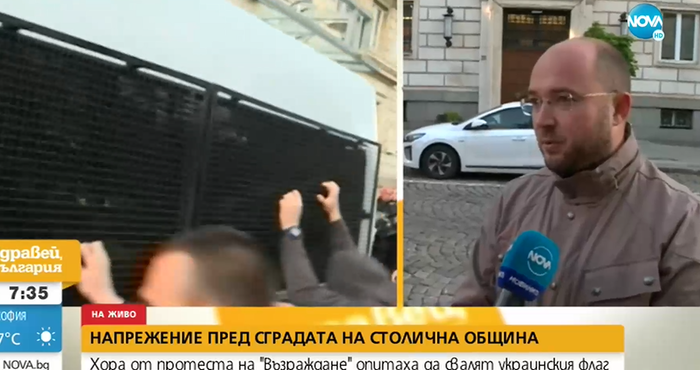 Вчера вечерта протестиращи от “Възраждане” нападнаха сградата на Столичния общински съвет в опит да свалят украинското знаме, което е издигнато там. Тази сутрин темата коментира по Нова Тв председателят на СОС Георги Георгиев: