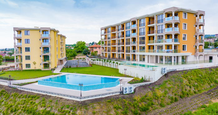 Жилищния комплекс се състои от две пететажни жилищни сгради, басейн с размери 10 на 16 метра с голяма зона за релакс и детска площадка, разположени в 5 дка богато озеленено дворно място.