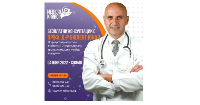 Ние от ЗИЦ „Медикъл Караджъ“ знаем, че търсенето и откриването на специалисти от световна класа е трудна, понякога непосилна задача за българските пациенти. Това е причината на 4-ти Юни 2022 в гр. София, ЗИЦ „Медикъл Караджъ“ с удоволствие да посрещне за пореден път един от най-добрите специалисти по бъбречни и чернодорбни трансплантации- проф. д-р Бюлент Юнал. Той ще гостува в България по покана на нашия управител – Звезделина Лютфи. Гостуването му ще се проведе в рамките на инициативата ни да предоставим достъп на българските пациенти до най-съвременните методи и технологии в медицината. Всички пациенти, които имат нужда от бъбречна или чернодробна трансплантация, могат да се възползват и да проведат безплатна консултация с хирурга. Желаещите да се възползват от БЕЗПЛАТНАТА консултация със специалиста могат да се обадят на телефоните на здравния център 0879 977 402; 0878 500 940 и да си запишат час.