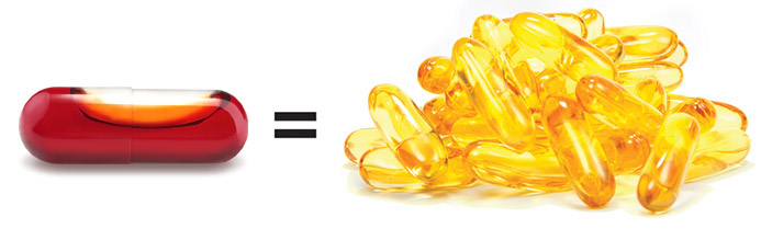 Благодарение на своята фосфолипидна формула и богато съдържание на астаксантин ефективността на Visilife надхвърля многократно тази на рибеното масло