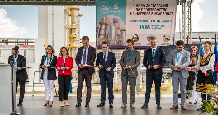 снимка: Прерязване на лентата на инсталацията за производство на натриев бикарбонат, “Солвей Соди” АД, Девня