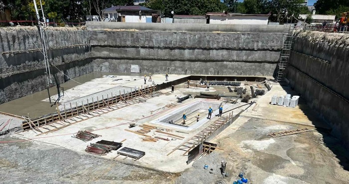 Изпълнението на проекта започна в края на миналата година с извършване на изкопни дейности и укрепване. За укрепването на изкопа е положен специален торкрет бетон по стените му, което позволява удълбочаването. Дълбочината на изкопа е около 10 метра, като са изнесени над 30 000 м3 земни маси. По целия периметър на изкопа са изградени 195 броя стоманобетонни пилоти с диаметър 60 сантиметра, в които са вложени 166 тона армировъчно желязо и 800 м3 бетон. Монтирана е метална обединяваща греда на две нива с тегло над 17 тона.