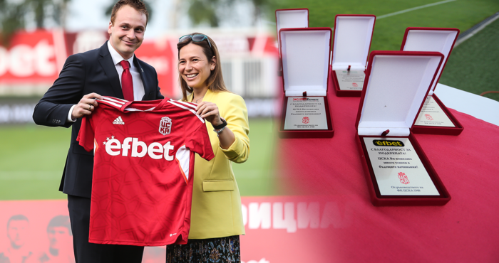 Може би най-големият български букмейкър efbet беше отличен за подкрепата си към футболния отбор ЦСКА 1948. На церемонията по време на официалното представяне на отбора за новия сезон 22/23, маркетинг директорът на компанията Цветина Георгиева получи специален плакет и футболен екип на червените.