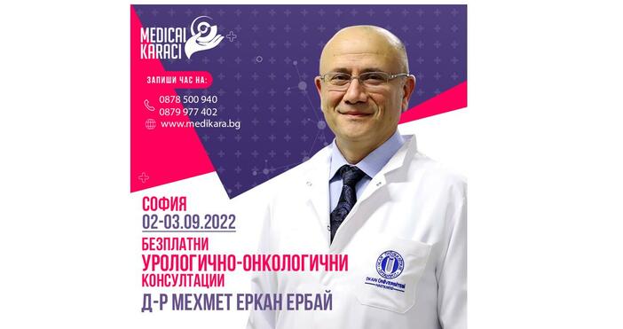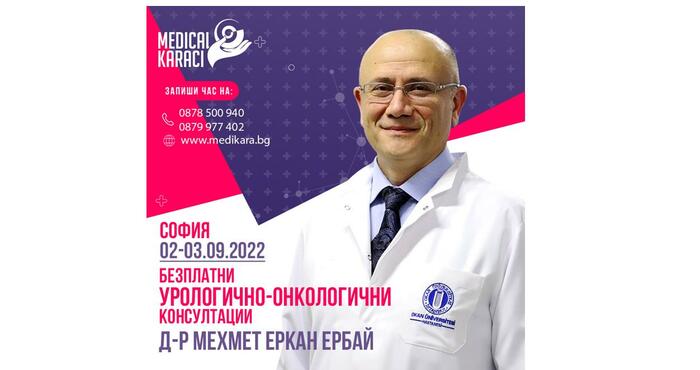 Ние, ЗИЦ „Медикъл Караджъ“ имаме удоволствието да посрещнем на 2-ри и 3-ти Септември 2022 за първи път Д-р Мехмет Еркан Ербай - специалист по онкология, урология и нарушения на сексуалното развитие.Той ще гостува в България по покана на нашия управител – Звезделина Лютфи. Гостуването му ще се проведе в рамките на инициативата ни да предоставим достъп на българските пациенти до най-съвременните методи и технологии в медицината.