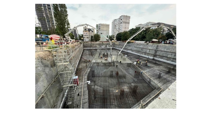 Фундаментът бе излят на два етапа за около 40 часа, като основите на сградата са излети за 21.30 часа без прекъсване, основите на подземния гараж – за 18 часа. Непрекъснатият цикъл при леенето, без работни фуги е технологично по-добро изпълнение на основата. То предотвратява навлизането на вода и различни дефекти, които могат да се породят с течение на времето.