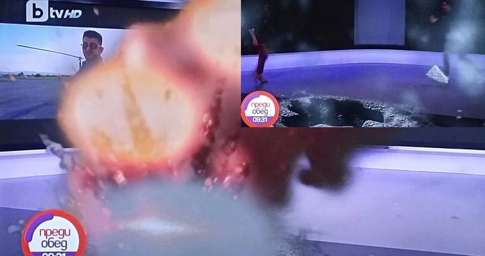 Преди самият взрив, бе пуснато клипче, което откри предаването. "Това лято не успяха да стъпят на Марс, не срещнаха и извънземни, дори не направиха пълна обиколка на земното кълбо. Но не спираха да летят и мечтаят. Време е обаче да стъпят здраво на земята, защото новият сезон на "Преди обед" долетя като метеорит", каза глас зад екрана, след което студиото бе ударено.