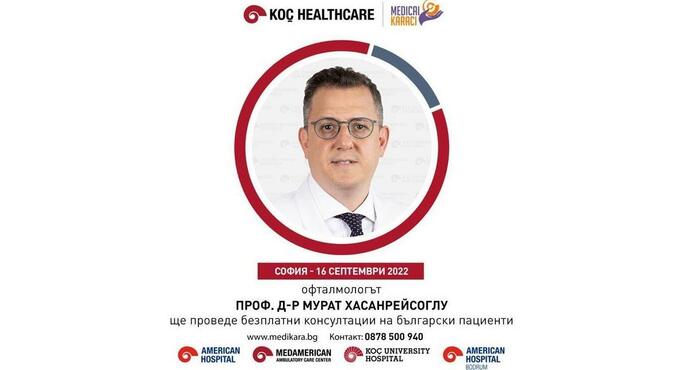 Желаещите да се възползват от възможността за безплатна консултация с Доц. д-р Мурат Хасанрейсоглу в София на 16 септември 2022 трябва да си запишат предварително на телефоните на „Медикъл Караджъ“: 0878 500 940 или 0879 977 402 или да заявят желания от тях час онлайн на www.medikara.bg.