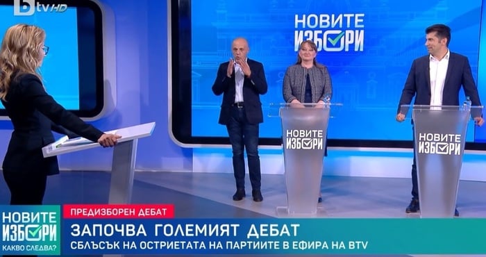 Ледерът на ПП Кирил Петков и двама представители на ГЕРБ се появиха без предупреждение в студиото на bTV по време на дебата преди вота. Томислав Дончев се появи без покана, след което си тръгна заедно със Деница Сачева. В дебата трябваше да участват Деница Сачева от коалиция „ГЕРБ-СДС“, Венко Сабрутев от „Продължаваме промяната“, Христо Проданов от „БСП за България“, Деян Николов от „Възраждане“, Мартин Димитров от „Демократична България“ и Любомир Каримански от „Има такъв народ“.