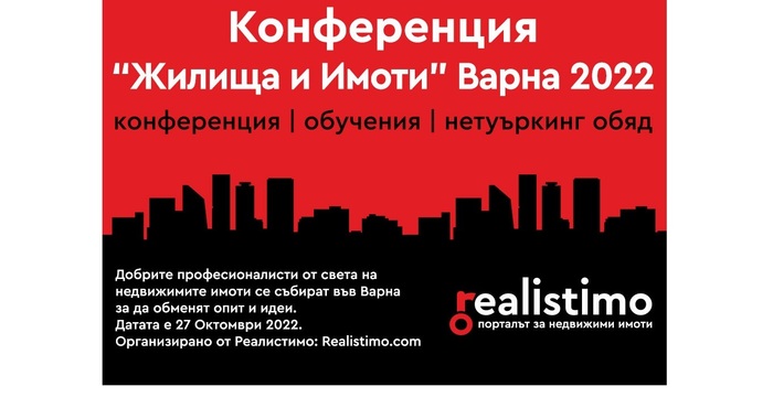Сайтът за обяви за имоти Реалистимо организира Конференция Жилища и Имоти 2022 Варна. Професионалисти от света на недвижимите имоти се събират за трети път за да обменят опит и идеи. Датата е 27 октомври 2022 година от 13:00 часа, а мястото е хотел Golden Tulip, Варна.