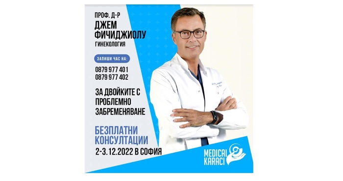 Двойки с проблемно забременяване от София и региона ще имат възможност да се консултират БЕЗПЛАТНО с водещия специалист от Турция на 02-03.12.2022г.