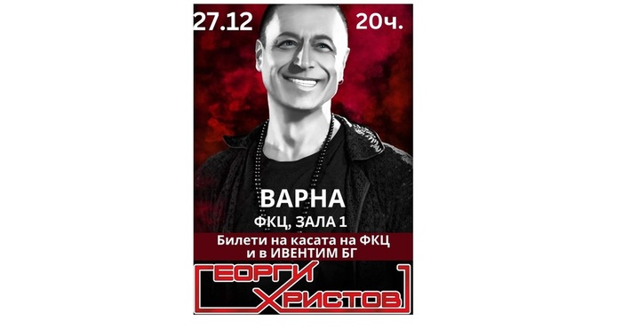 На 27 и 28.12.2022г във Варна и Бургас почитателите на великия Георги Христов ще могат да съпреживеят една великолепна вечер с него, грандиозна и незабравима, нежна и чувствена.