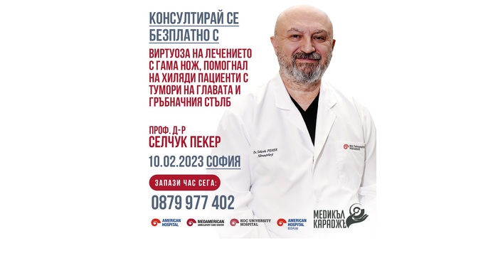 Желаещите да се възползват от възможността за безплатна консултация с проф. д-р Селчук Пекер на 10-ти Февруари 2023г. в София, трябва да си запишат час предварително на: