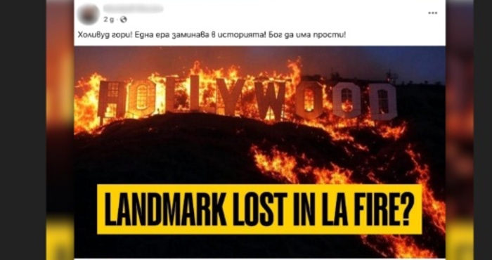 В социалните мрежи са разпространяват множество манипулирани изображения и видеа на известния надпис Hollywood в Лос Анджелис. По този начин се внушава, че той е засегнат от опустошителните пожари, които нанесоха значителни щети в щата Калифорния и отнеха живота на най-малко 16 души.