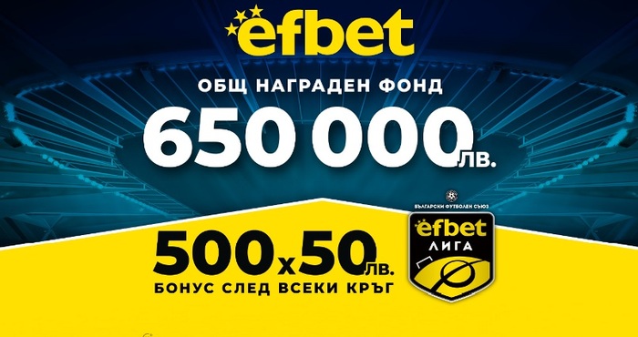 Години наред продължава бонус предложението на efbet, обвързано с българския шампионат. През сезон 2022/23 обаче компанията го промени, като увеличи драстично наградния фонд от 50 000 до 650 000 лева, както и броя печеливши след всеки кръг – от 3 до 500 души.