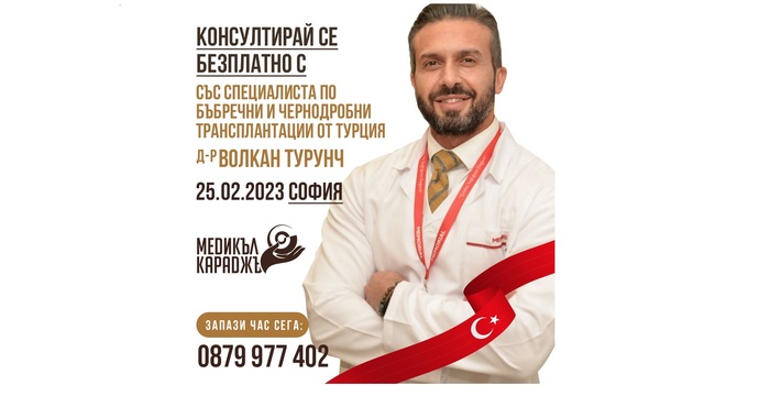 На 25-ти Февруари 2023г. в София гост на ЗИЦ Медикъл Караджъ за пореден път ще бъде специалистът по бъбречна и чернодробна трансплантация- Д-р Волкан Турунч. Той ще гостува по покана на нашия управител Звезделина Лютфи. В рамките на деня, специалистът ще проведе напълно безплатни консултации на българските пациенти, нуждаещи се от консултация, второ мнение или лечение в чужбина за своите заболявания.