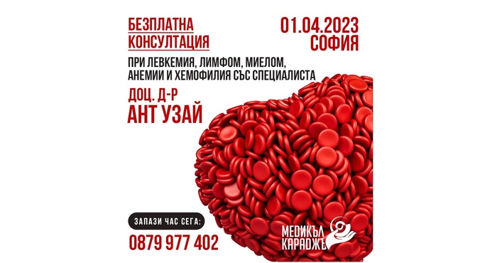 Безплатни консултации за пациенти с хематологични проблеми доц. д-р Ант Узай на 01-ви април 2023 г. в гр.София