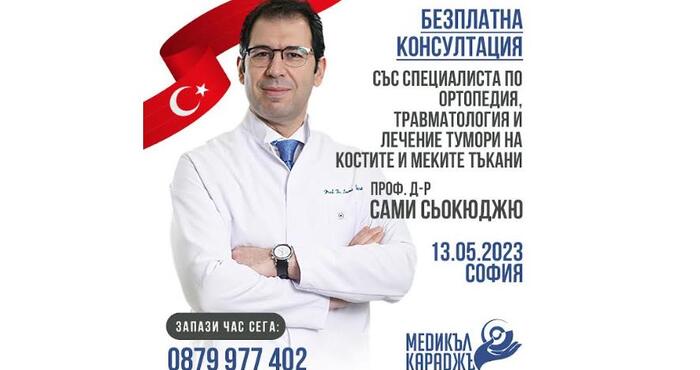 На 13-ти Май 2023 г. в София ЗИЦ “Медикъл Караджъ“ посреща ортопедът от световна класа- проф.-д-р Сами Сьокюджю. Авторитетният ортопед от болница „Медикъл парк Флория“, Истанбул ще проведе БЕЗПЛАТНИ КОНСУЛТАЦИИ на български пациенти със заболявания на опорно-двигателния апарат, които имат нужда от второ медицинско мнение и интерес към възможностите за лечение в чужбина на своето заболяване. Той ще гостува по покана на нашия управител Звезделина Лютфи. В рамките на деня, специалистът ще проведе напълно безплатни консултации на българските пациенти, нуждаещи се от консултация, второ мнение или лечение в чужбина за своите заболявания.