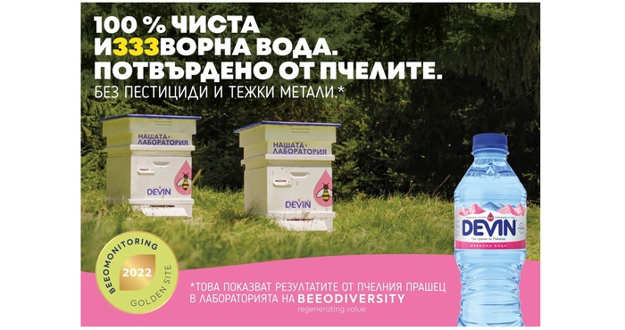 Водещата у нас компания за минерална и изворна вода „Девин“ получи златния медал на международната организация BeeOdiversity. Отличието се присъжда за постоянно високи резултати през годината за опазването на дивата природа с помощта на обективен BeeOmonitoring (биомониторинг), патент на BeeOdiversity, който се осъществява благодарение на пчелни семейства, отглеждани в защитената вододайна зона на изворната вода DEVIN. Четири пъти в годината BeeOdiversity анализира проби от прашеца, който пчелите събират в радиус от 1,5 км около извора. Проверяват го за наличие на над 500 различни вида пестициди и тежки метали, нива на биоразнообразие и качество на околната среда. Тази детайлна информация доказва, че регионът на водовземане е далеч от замърсяване и аграрна дейност.