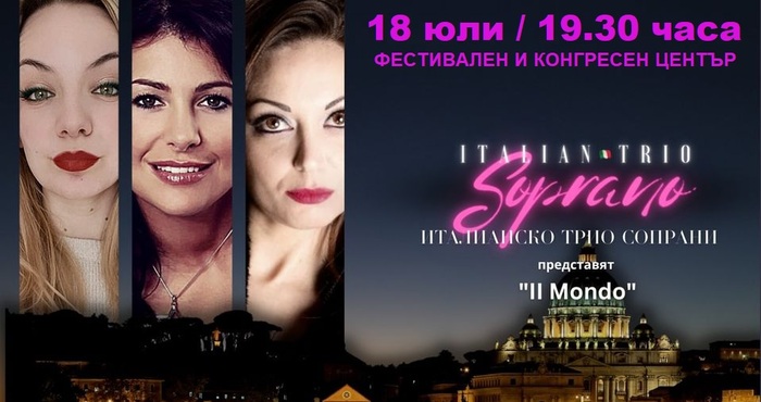 Италианско трио сопрани идва за първи път в България за концертно турне Il Mondo с Врачанския симфоничен оркестър под диригентството на маестро Христо Павлов. В годината на честването на 100-годишнината от рождението на Мария Калас, Елена Роси, Марика Франчино и Виола София Нисио представят проекта Il Mondo, информират организаторите.