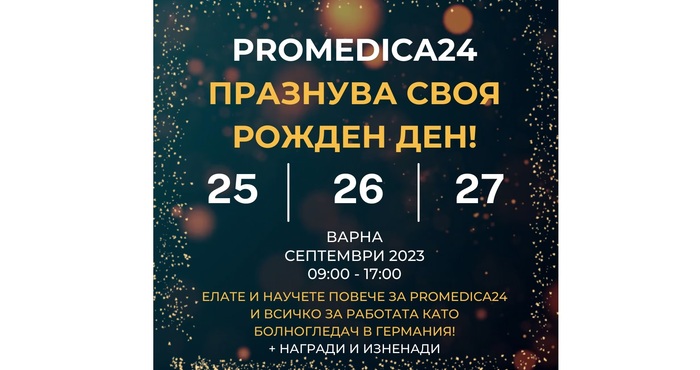 Заповядайте в офиса нa Promedica24 във Варна ул. Братя Миладинови 68, да празнуваме заедно Рождения ни ден на 25 ,26 и 27.09.2023