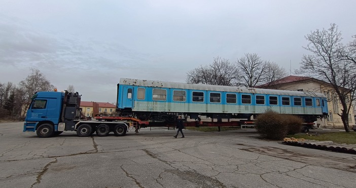 Вагон от пътнически влак, който ще бъде преобразен в библиотека на колела, монтираха в двора на Висшето транспортно училище "Тодор Каблешков".