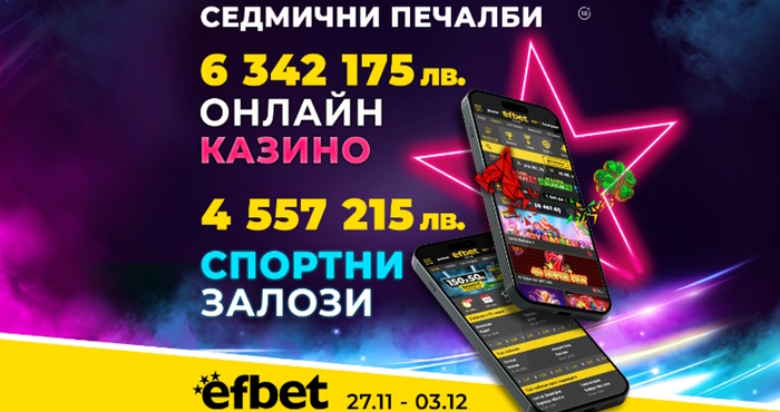 Благодарение на изкусните познания, най-вече във футбола, и сериозния късмет на потребителите в казино секцията, efbet изплати печалби на обща стойност 10 899 390 лева.