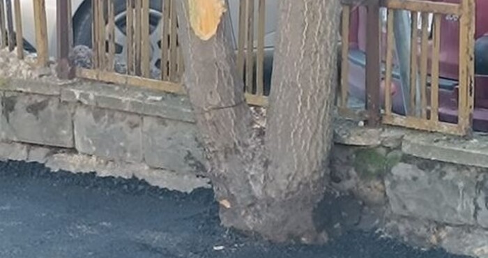 „Простотията с асфалтиране на дървета продължава....Това е от ремонта, който се извършва в момента в района на ЖП ГАРА-ВАРНА“, това написа във Фейсбук Атанас Николов, който пусна и снимка като илюстрация на думите си.