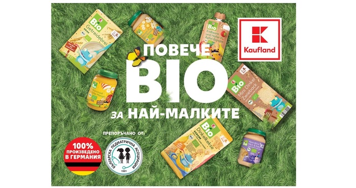 Kaufland разширява продуктовия си асортимент с био бебешките храни от собствената си марка K-Bio. Те са произведени в Германия, не съдържат оцветители и добавени аромати и са със строго контролирано биокачество. Пюретата K-Bio са специално разработени, за да отговорят на нуждите на децата от най-ранна възраст и са подходящи за бебета от 5, 6, 8 и 12-месечна възраст. Те ще бъдат предлагани във всички хипермаркети на Kaufland с намалена цена от 25% до 14 януари.