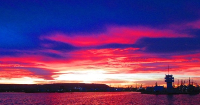 Пурпурното небе на зазоряване и свечеряване е доста разбираемо природно явление, коментираха специалисти специално за Varna24.bg. Когато слънцето залязва лъчите му се пречупват през облаците, което под определен ъгъл причинява червен цвят на небето, категорични са експертите.