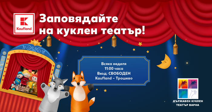Съвместната инициатива на Kaufland и Държавен куклен театър – Варна се провежда за втора поредна година и ще продължи до 31-и март. През седмица се редуват детски театрални постановки и приложни занимания, които са напълно безплатни. До края на март най-малките посетители на Kaufland-Трошево ще могат да гледат едни от любимите на всички деца заглавия като „Лакома мецана“, „Горските певци“, „Трите феи“ и „Слънчева полянка“.