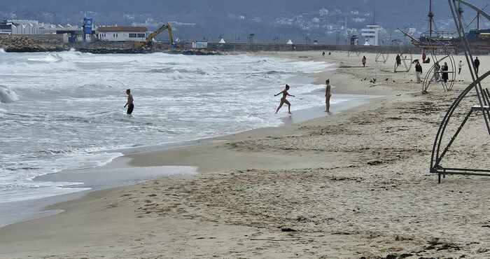 Независимо че днес във Варна времето е мрачно, а температурата на въздуха е едва 12 градуса, се намериха мераклии, които да се разсъблекат и да се топнат в морската вода. Според данните на НИМХ днес водата е температура 8 градуса.