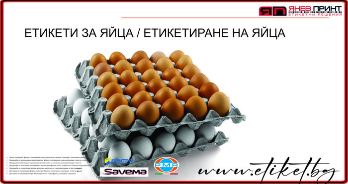 С навлизането на новите директиви всички производители ще трябва да преминат към етикетирането на своите продукти и ще забравим за яйцата в картон. ЯНЕВ ПРИНТ ЕООД е производител на етикети които гарантира висококачествени решения за етикетиране, етикети и машини за поставянето на етикетите, маркиране на продуктите и тяхното апликиране.