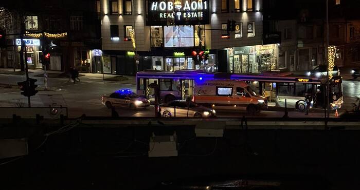 Очевидци съобщават, че автобус на градския транспорт е блокирал кръстовището на кръглата банка още преди 20:00 часа тази вечер, а на място има полиция и линейка.