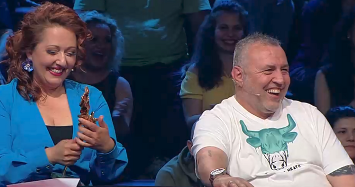Бесен, Пъдев предупреди Гладнишка, че ще я размаже в комедийното куиз шоу и тя ще си остане само с тази награда за вечерта, но Милица не му остана длъжна.