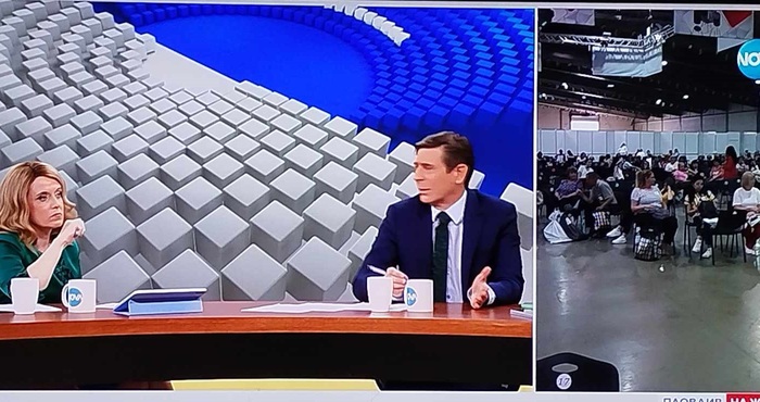 "Петима души са колабирали и им е оказана спешна медицинска помощ от линейките, които са пред палатата на международния панаир. Тук продължава да е задушно. Виждате, че някои от хората са по столовете. Някои вече спят, защото не издържат от умора", каза Бекриев.