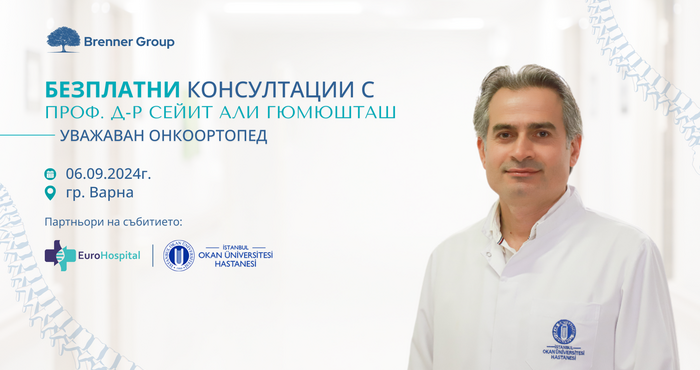 В началото на месец септември, по покана на център за медицинско посредничество Бренер Груп и МБАЛ “Еврохоспитал” - Варна, в морската ни столица гостува един от най-видните турски онкологични експерти. Проф. д-р Сейит Али Гюмюшташ е член на истанбулската болница Окан и печели редица отличия в хода на своята дългогодишна успешна кариера в онкологичната медицина. Сред неговите сфери на експертиза попадат някои от най-широко разпространените онкоортопедични заболявания като: