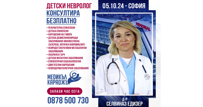 Здравен информационен център "Медикъл Караджъ" има удоволствието да предостави на българските родители изключителната възможност за безплатни консултации с д-р Селвиназ Едизер – специалист по детска неврология от болница Мемориал Бахчелиевлер, Истанбул. Това е уникална възможност за родителите на деца с различни неврологични състояния да получат професионално второ мнение и насоки за лечение от висококвалифициран специалист с дългогодишен опит.