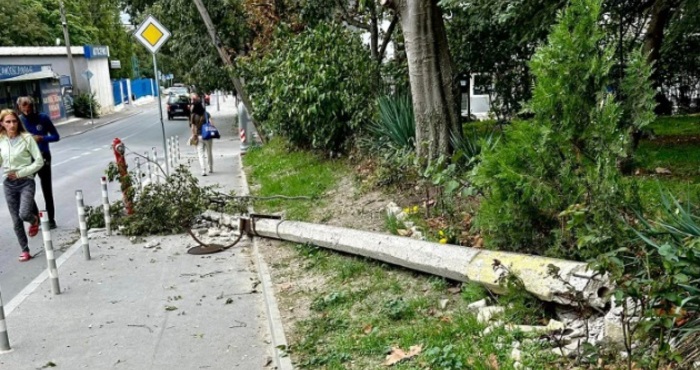Вчера, между 12:00 и 17:30 ч е паднал стълб на ул. Подвис (близо до кръстовището с ул. Зеленика), а съседният стълб се е наклонил опасно.