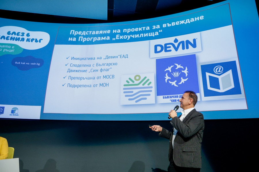 Над 300 преподаватели и директори от цялата България присъстваха на официалното откриване на третата учебна година по програмата „Влез в зеления кръг“ на „Девин“ ЕАД и Българско движение „Син флаг“. Училищата и детските градини, които ще въведат темата за екообразованието в своите учебни планове, са с 30% повече в сравнение с предходните издания на инициативата. На откриването на новата учебна година за българските „Екоучилища“ присъстваха: Елена Матеева, ръководител „Стратегически комуникации“ в Българската мрежа на глобалния договор на ООН; Марина Стефанова, заместник-декан „Устойчиво развитие, подкрепа и ангажиране“ в Стопански факултет на Софийския университет; Румяна Георгиева, експерт „Консервационни дейности, дарителство, социално предприемачество“ в Българска фондация „Биоразнообразие“.