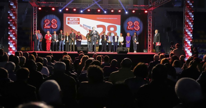 Хиляди изпълниха зала Арена Шумен на събитието на БСП – Обединена левица – своеобразна кулминация на предизборната кампания. То събра ръководството на партии в лявото обединение, водачи на листи от цялата страна, кандидати за народни представители от няколко района. Събитието беше уважено и от представители на местната власт, сред които кметът на Шумен Христо Христов, на Нови пазар Георги Георгиев, кметът на Разград Добрин Добрев, заместник кметът на Силистра Стилиян Стойчев. Хора от Шумен и областта започнаха да пристигат час преди началото му.