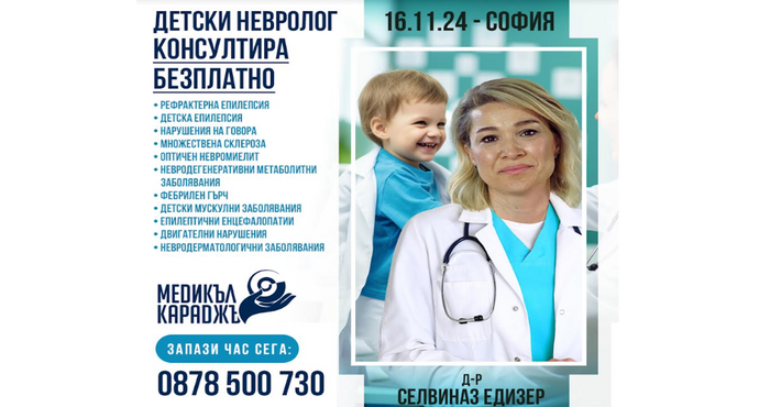 Здравен информационен център "Медикъл Караджъ" има удоволствието да предостави на българските родители изключителната възможност за безплатни консултации с д-р Селвиназ Едизер – специалист по детска неврология от болница Мемориал Бахчелиевлер, Истанбул. Това е уникална възможност за родителите на деца с различни неврологични състояния да получат професионално второ мнение и насоки за лечение от висококвалифициран специалист с дългогодишен опит. Д-р Едизер е специалист в диагностиката и лечението на сложни неврологични състояния при деца.