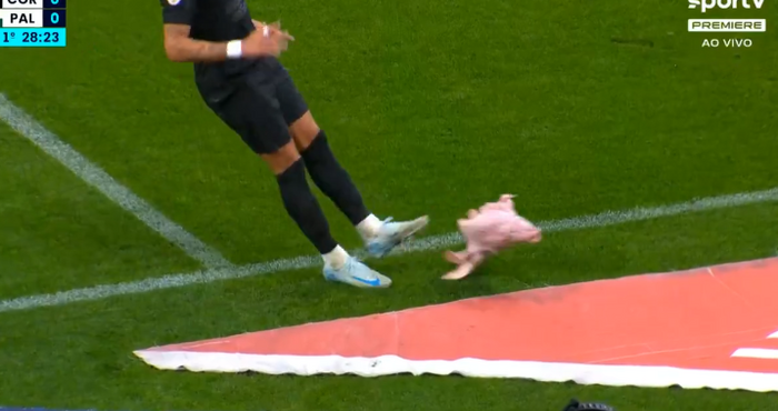 В 29-ата минута при резултат 0:0 привържениците на Коринтианс хвърлиха на терена истинска свинска глава в опит да попречат на съперника да изпълни ъглов удар.