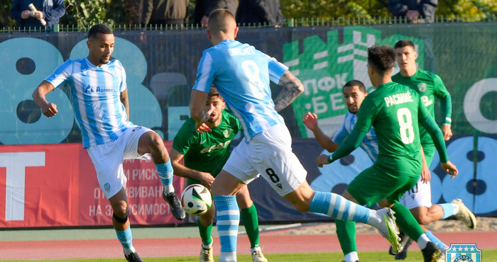През първото полувреме липсваха голови положения, като имаше само един точен удар - на сметката на гостите. В 4-ата минута Васил Панайотов опита с шут по земя от дистанция. Ударът му обаче не затрудни Артур Мота, който улови.