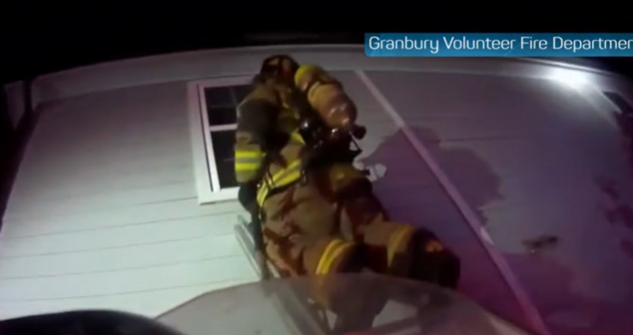Пожарникарят от доброволческата пожарна служба на окръг Северен Худ е заснет от камерата на колегата си как разбива прозореца на спалнята на втория етаж в горяща къща в Гранбъри, което позволява безопасното изваждане на 2-годишния Лиъм Кийн, пише „Фокс нюз“, съобщава bTV.