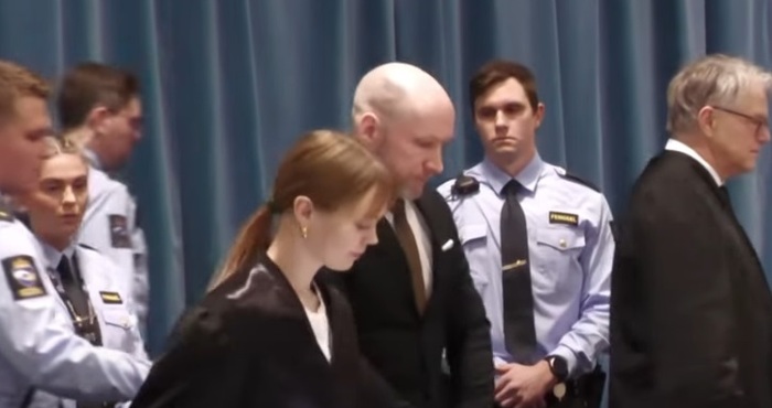 Брайвик носеше тъмен костюм, бяла риза и кафява вратовръзка. Двете страни на главата му бяха обръснати, за да образуват буквата "Z".