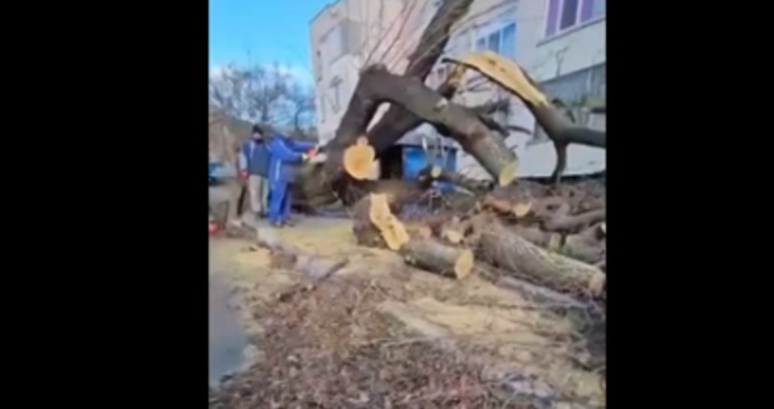Стогодишната черница не е устояла на поривите на вятъра и се е стоварила на тротоара. За щастие няма пострадали. На място веднага е изпратена аварийна група, която реже и прибира клоните.