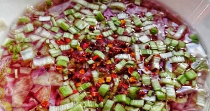 Приготвена е от зелева чорба, ситно нарязано кисело зеле, олио, праз и лют червен пипер.